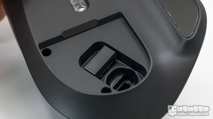 특히 센서 아랫부분에는 자석으로 탈부착되는 커버를 오픈하며 RF 무선 리시버를 수납할 수 있는 수납공간과 제품에는 제공하지 않지만 USB-C 방식의 나노 타입 블루투스 리시버도 보관이 가능해 보입니다.