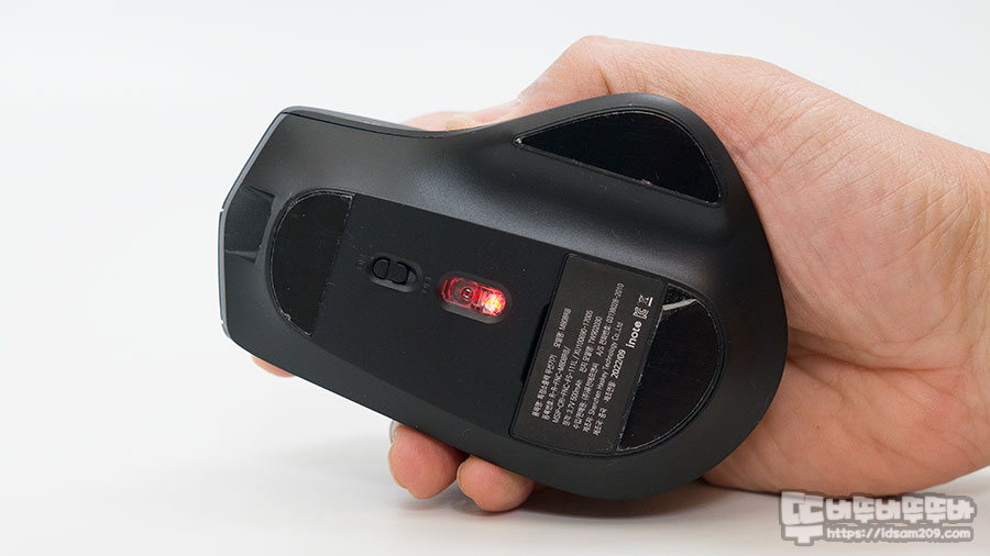 마우스 왼쪽이 기울기와 중앙 부분이 높게 솟은 디자인이 마우스 그립 시 생각보다 불편하게 느껴질 수 있는데 버티컬 마우스를 옆으로 눕혀서 잡는 느낌으로 사용하시면 됩니다.