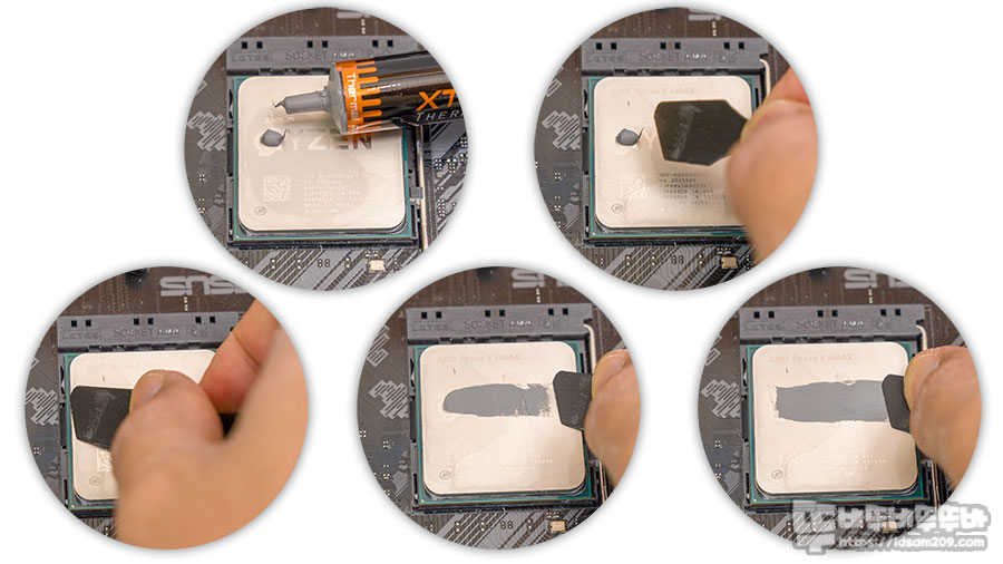 다음은 샤캰 XTC-4 써멀 컴파운드는 MX-6보다는 처음 도포나 힘을 주어 눌러서 도포하는 두 번째 모두 부드럽게 펴지는 느낌을 받았습니다.