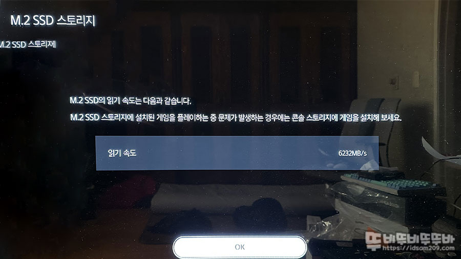 포맷 이후에는 6232MB/s 읽기 속도를 보여주는데 운영체제 차이로 속도 차이가 있는 거 같네요.