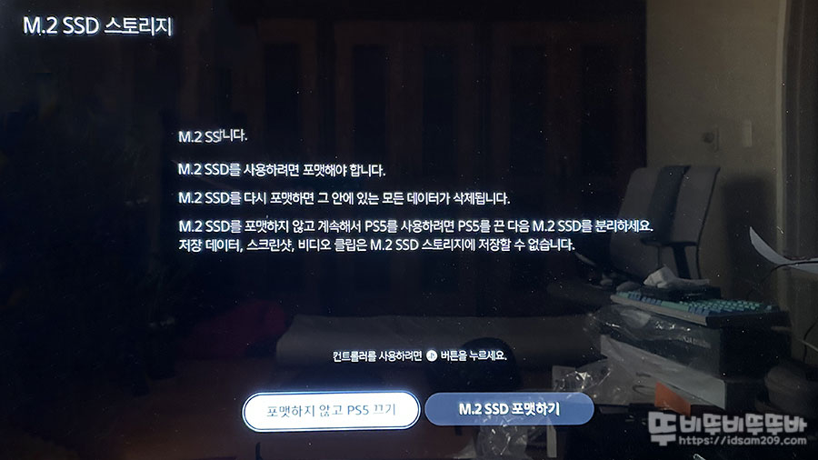 이렇게 장착 이후 PS5를 구동하면 포맷을 진행하라는 화면을 보게 되네요.