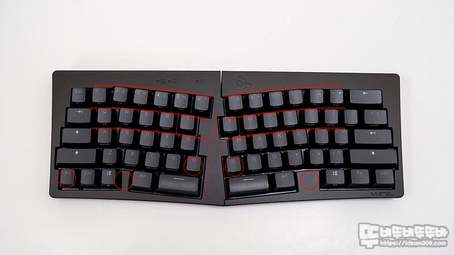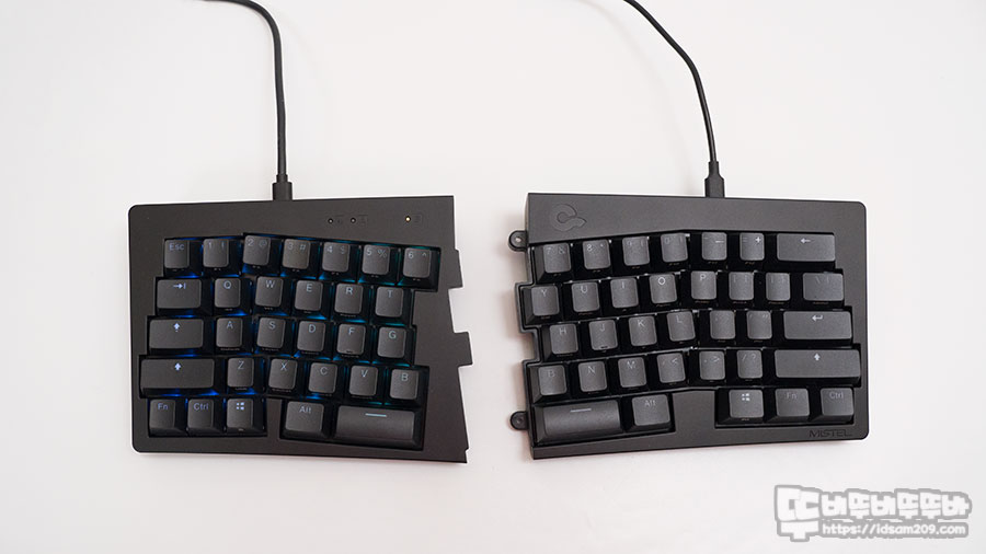 기존의 스플릿 키보드의 경우 왼손과 오른손의 자판 운지법을 숙지해야 하는 난이도가 있었다면 이번 제품은 운지법 이외에 서두에 언급한 왼쪽 키보드의 Fn 키 위치, Alt키 옆의 간격, 양쪽으로 배치된 B키로 인한 오타 발생을 염두 해야 할 거 같네요.