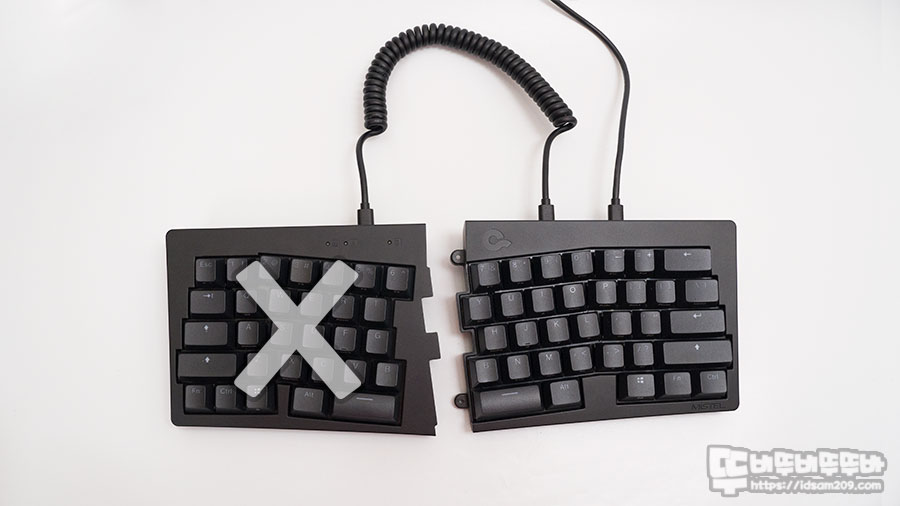 스플릿 키보드 특징상 타자 프로그램을 통한 손가락 운지법을 정확하게 구사해야 사용하시는데 불편함이 없는데 처음 사용하시는 분들이라면 앨리스 배열의 특징에 일정 시간 적응이 필요합니다.