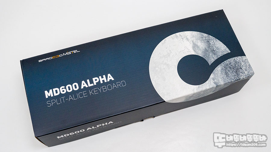 패키지에는 모델명 MD600 Alpha 그리고 Split-Alice 키보드라는 인쇄 내용을 확인할 수 있습니다.