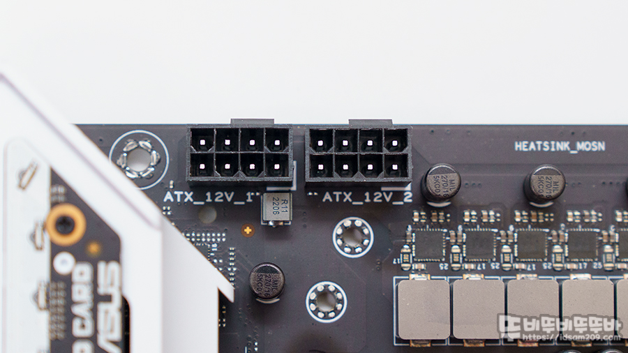 CPU 보조전원은 고성능 파워에서 볼 수 있는 8 to 8핀 구조로 디자인되어 메인보드 구입하시기 전에 파워 서플라이 커넥 정보를 확인하시는 게 좋을 거 같습니다.