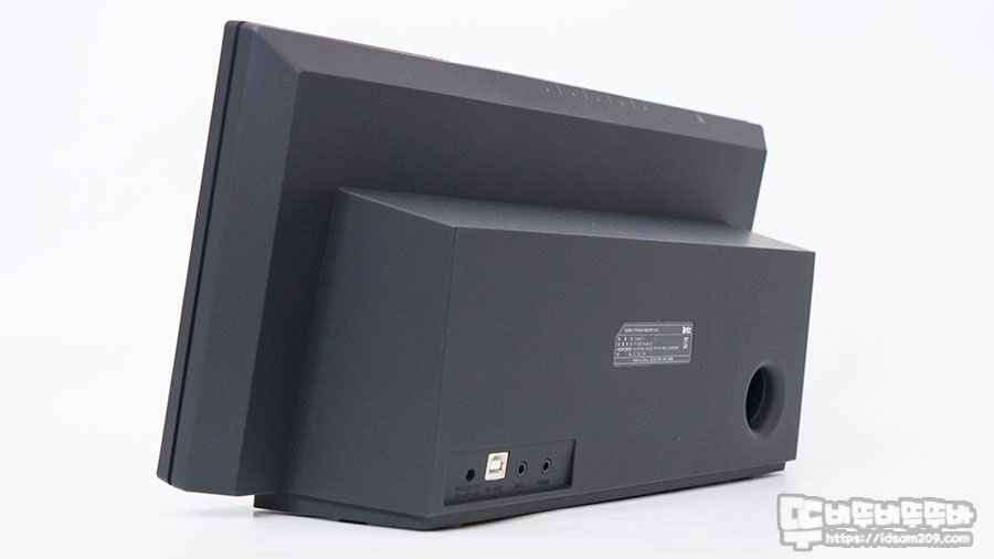 스피커는 뒤로 젖혀지는 경사로 디자인되어 앉아서 조작하는 것보다는 서서 조작하는 게 좀 더 편합니다.