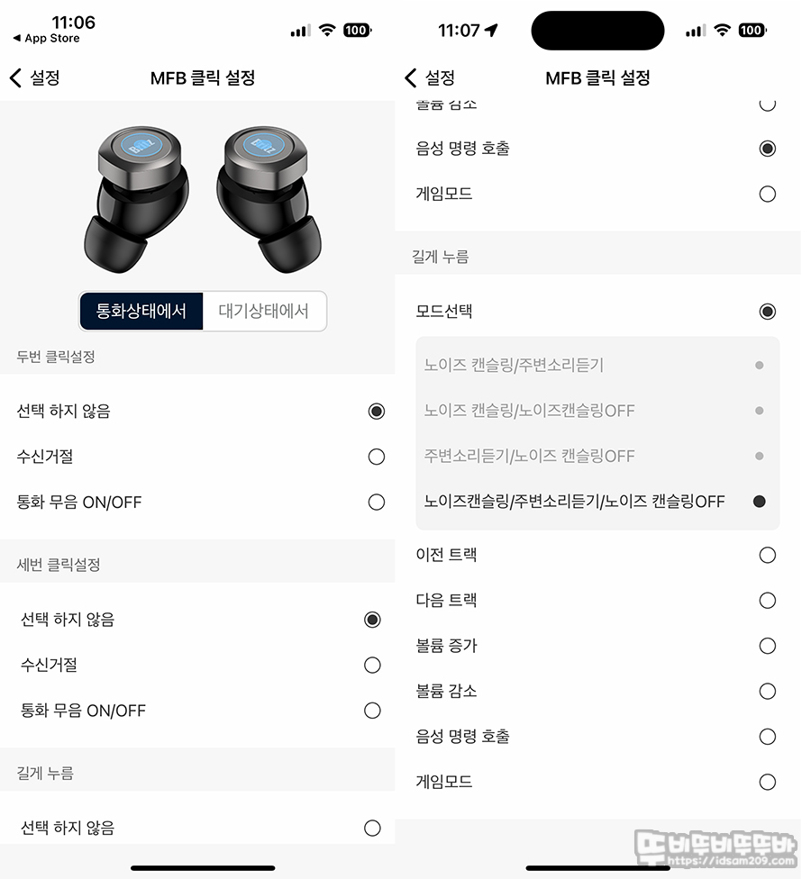 그 외에 버튼 컨트롤 기능을 사용자가 기능을 변경할 수 있게 지원하고 있어 편리하게 사용할 수 있습니다.