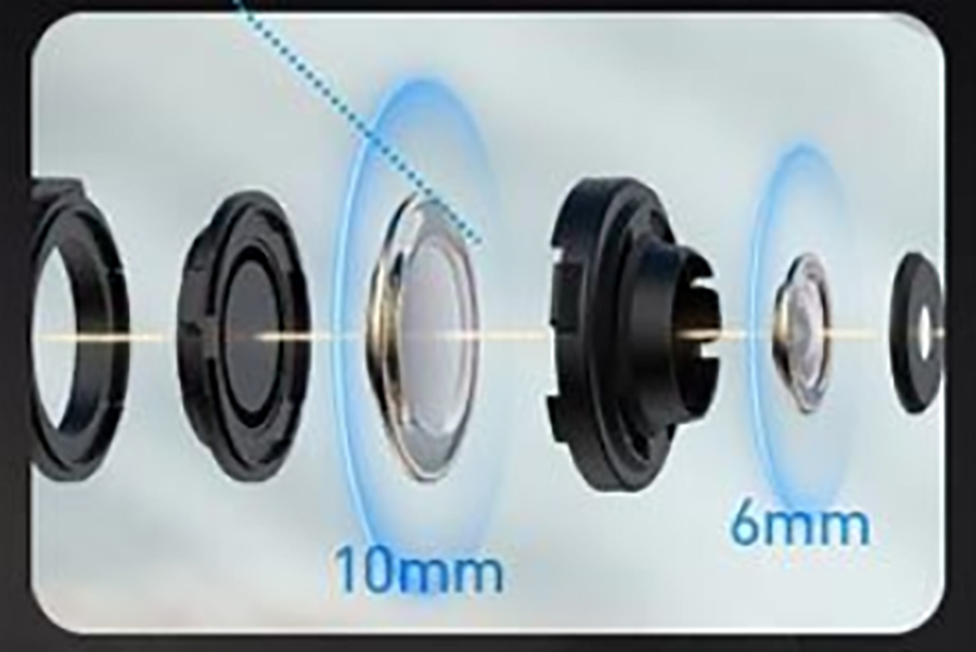 제품의 상세 내역에 표현된 10mm, 6mm 듀얼 다이나믹 복합 드라이버의 모습입니다.