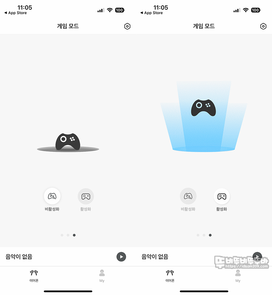 완충 이후의 사용 시간은 노이즈 캔슬링 On/Off에 따라 차이가 나는데