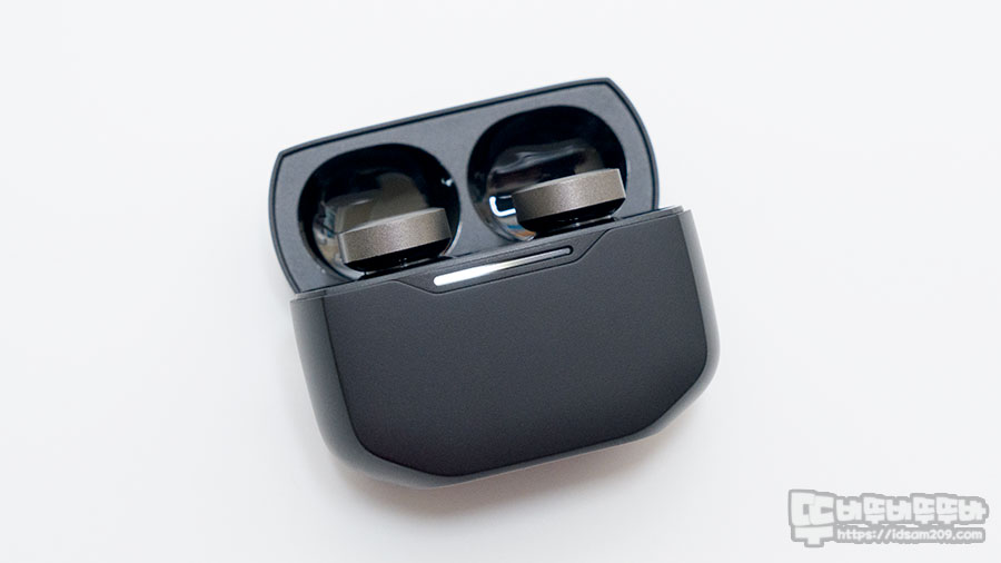 무선 이어버드 수납 및 충전 시 배터리 잔량을 표현하는 전면 LED 인디케이터는 좌우로 움직이는 효과로 표현되네요.