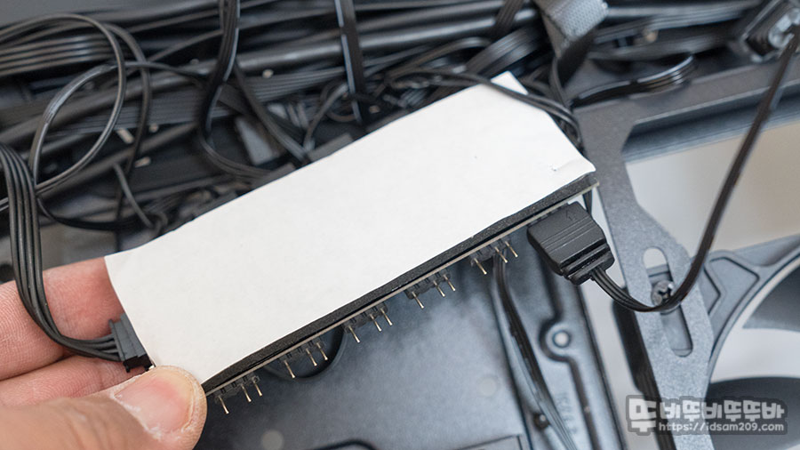 특히 팬과 ARGB +5V 헤더 허브로 구성된 컨트롤러는 부착되지 않은 상태로 되어있어 조립을 하면서 케이블을 잘 정리하면서 컨트롤러 뒷면의 양면테이프를 이용하여 케이스 샤시면에 부착하시면 되는데요.