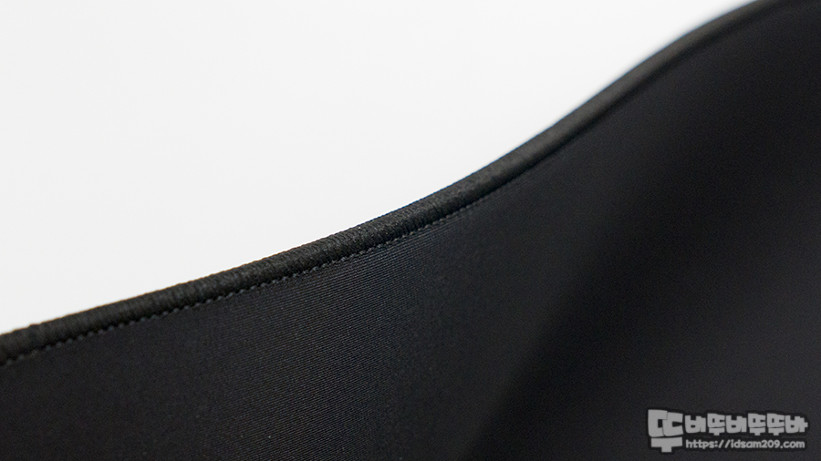 손바닥으로 마우스의 표면은 문질러보면 보통의 패브릭 표면의 거친 느낌이 없이 매끄럽고 부드러운 느낌을 느낄 수 있는데 라이크라와 나일론이 합성된 제품이기에 두 가지 소재의 강점이 잘 느껴집니다.