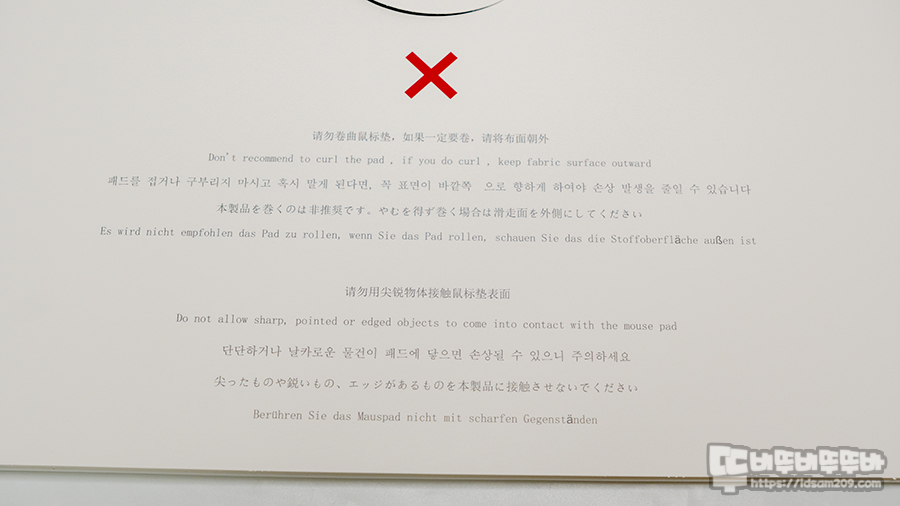 패키지에는 패드를 접거나 구부리지 말고 패드를 말게 되는 경우 표면을 바깥쪽으로 하여 말아야 한다고 표기하고 있는데 표면을 안쪽으로 말아서 보관하는 경우 발포폼 베이스가 표면에 영향을 줄 수 있기에 바깥쪽으로 말아서 보관하는 방법을 강조하는 거 같네요.