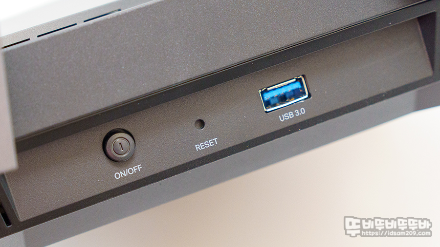 정면에는 WPS, Wi-Fi On/Off, LED On/Off 버튼 그리고 측면에는 전원 버튼과 리셋 버튼, USB 3.0 포트로 구성되어 있고요.
