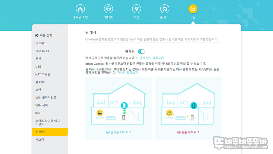 요즘은 대세가 되어버린 "원 메쉬" 기능을 제공하여 메시 와이파이 구성이 가능한 티피링크 제품을 함께 사용한다면 하나의 Wi-Fi SSID로 이동 중에도 끊김 없이 무선 인터넷을 사용하면서 집안을 돌아다니실 수 있습니다.