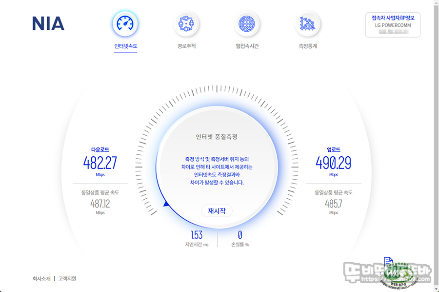 이렇게 연결되었으니 어느 정도 속도가 나오는지 궁금해지는데요.