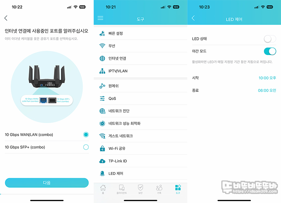 10Gbps 듀얼 포트, 2.5Gbps 포트, 기가비트 LAN포트, USB 3.0 포트 지원 특히 RJ45 포트와 SFP+ 콤보 포트 구성은 지금까지 경험해 보지 못한 넘사벽 공유기 느낌을 경험하게 해 주었습니다.
