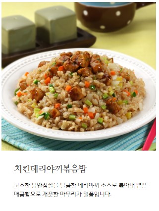 첫 번째 메뉴는 치킨 데리야끼 볶음밥인데요.