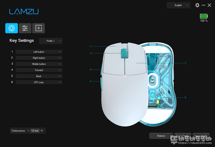 디바운스 타임의 경우 시간이 짧아지면 짧아질수록 더블클릭 속도가 늘어나니 가급적 기본 시간에서 많이 벗어나지 않게 사용하는 걸 추천드립니다.