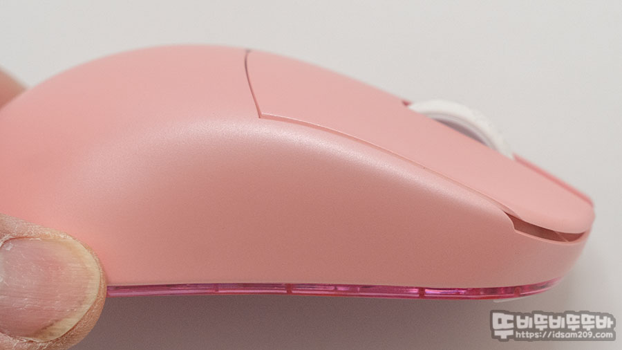 큰손으로 미니 마우스를 사용하다 보니 그립감보다는 평소에 사용하는 버튼 클릭 포인트가 낮아져 총기 격발을 할 때 느껴지는 조금의 어색함 그리고 후아노 블루쉐 핑크닷 스위치의 딸이는 구분감으로 빠른 연속 클릭 시 리듬감으로 사용해야 하는 부분에 적응이 필요했습니다.