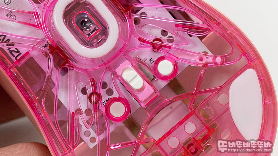큰손으로 미니 마우스를 사용하다 보니 그립감보다는 평소에 사용하는 버튼 클릭 포인트가 낮아져 총기 격발을 할 때 느껴지는 조금의 어색함 그리고 후아노 블루쉐 핑크닷 스위치의 딸이는 구분감으로 빠른 연속 클릭 시 리듬감으로 사용해야 하는 부분에 적응이 필요했습니다.