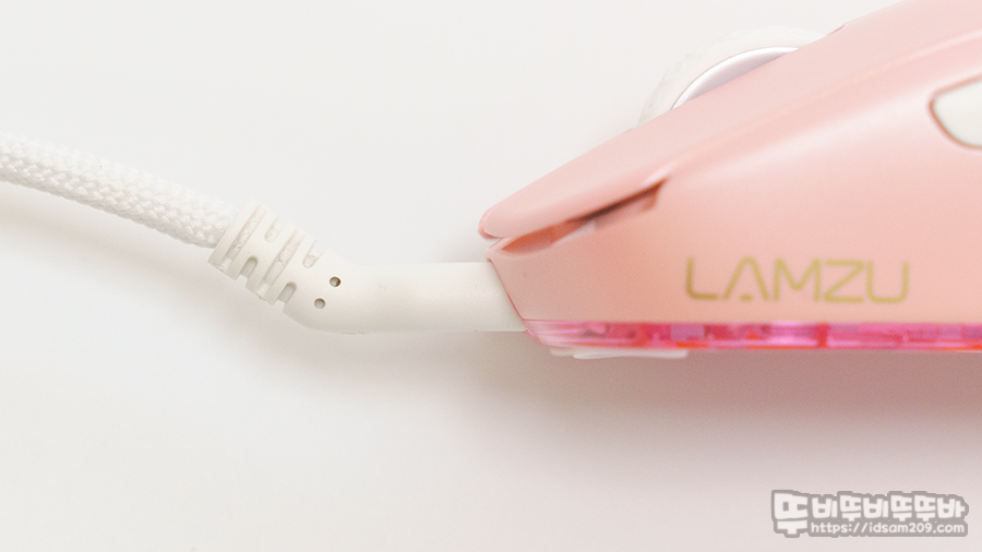 마우스 왼쪽 사이드에 인쇄된 람주 로고 모습.