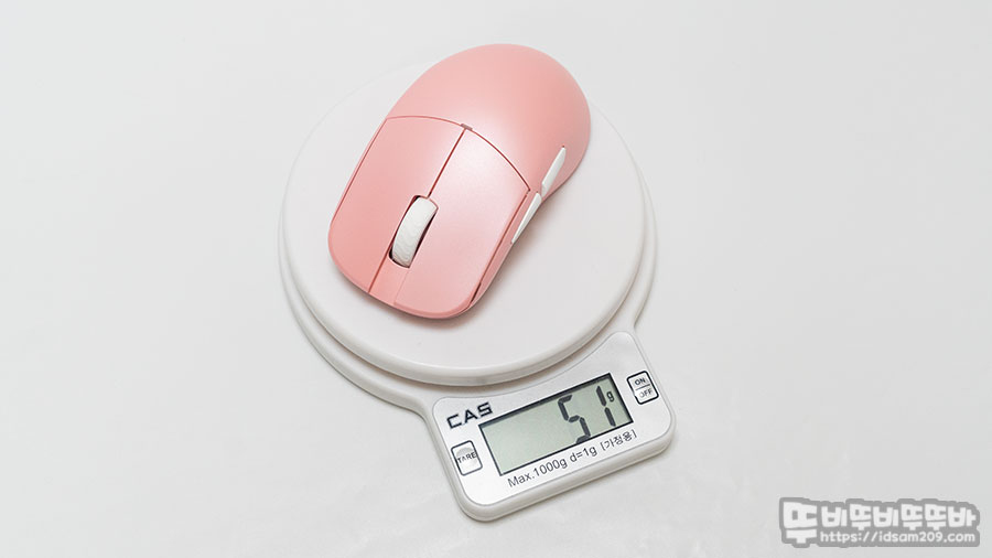 1g 단위로 측정 가능한 디지털 저울로 무게를 측정 시 약 51g의 무게로 스펙 정보의 49g 무게와는 약간 차이가 있는 편이네요. (리시버 미포함 무게임)