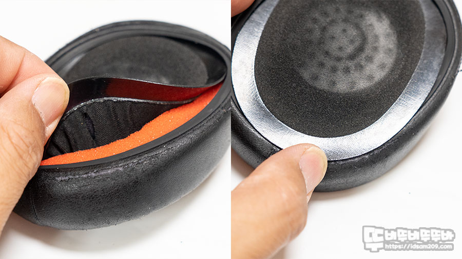 정품 이어패드는 안쪽에 얇은 플라스틱 가이드가 천에 부착된 형태로 커버형태 디자인이지만 이어패드가 회전이 되지 않게 디자인된게 특징이지만, 알리에서 구입한 이어패드는 외형은 비슷하지만 그냥 일반적인 커버형 디자인으로 사용하다 보면 이어패드가 회전할 가능성이 높습니다.