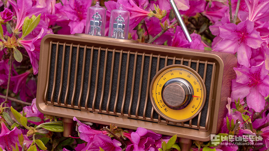 거기에 노란색으로 인쇄된 FM 라디오 주파수 다이얼 디자인도 올드한 느낌을 줍니다.