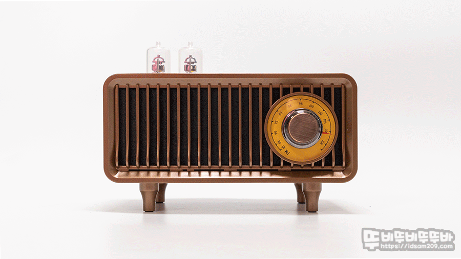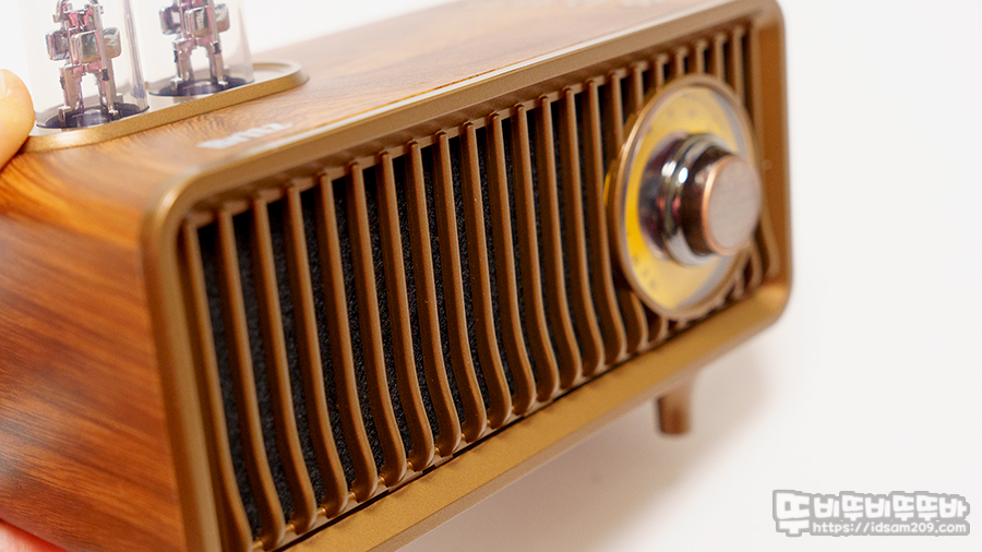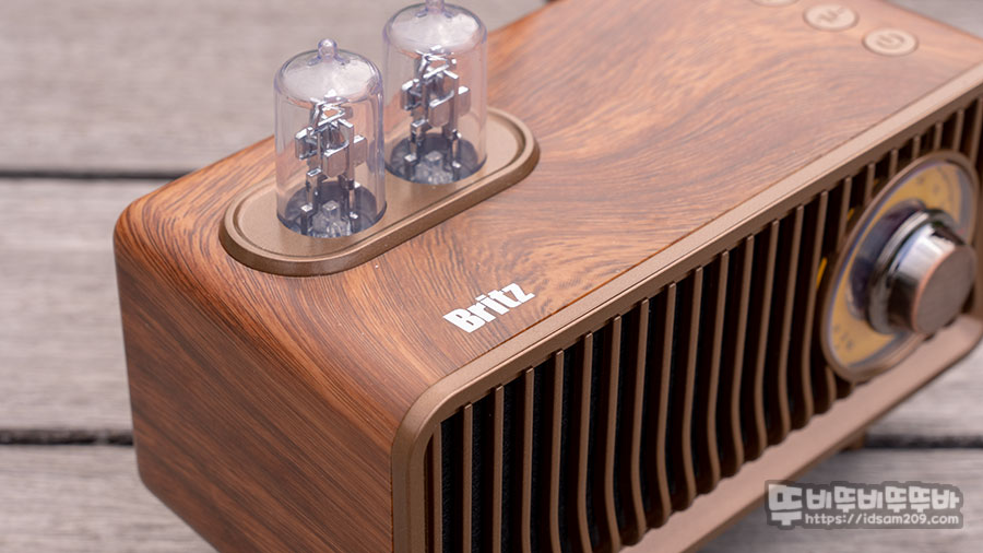 외형적으로 상당히 매력적인 Britz 브리츠 BA-MK250는 과거 전축에서 볼 수 있는 전면 그릴 느낌과 FM 라디오 주파수를 선택할 수 있는 다이얼 그리고 진공관 디자인의 무드등이 믹스되어 앤티크 느낌의 올인원 블루투스 스피커 모습을 보여주고 있는데요.