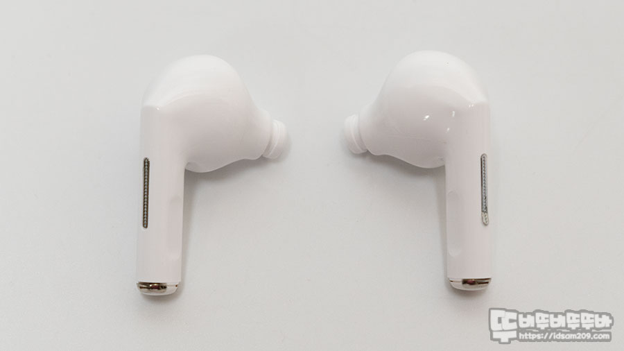 이어버드는 오프형 디자인에 노즐이 추가된 형태로 드라이버 유닛 사이즈를 가늠할 수 없지만 노즐 부분의 구경이 꽤 큰 편입니다.