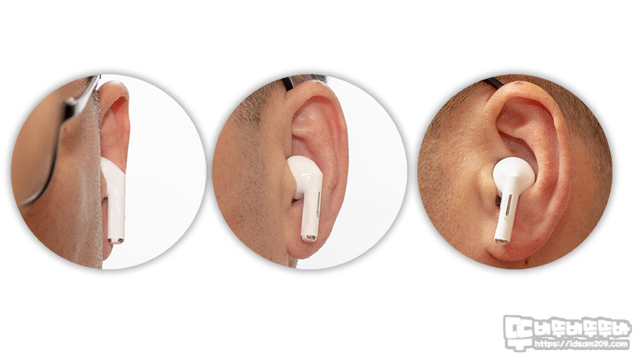 이어버드는 살짝 두께가 느껴지는 타입으로 귀에 착용 시 살짝 튀어나오는 느낌이니 이어팁을 귓구멍이 맞게 착용하셔야 안정감이 있는 사운드로 음악을 감상하실 수 있었습니다.