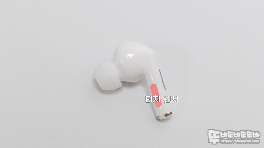 귀 안쪽으로 착용되는 하우징은 공기 흐름을 좋게 해주는 에어밴트가 적용되어 있으며 충전 단자가 있는 스틱 중간에는 터치센서가 위치하고 있어 이어버드 착용 후 컨트롤 시 편리함을 제공합니다.