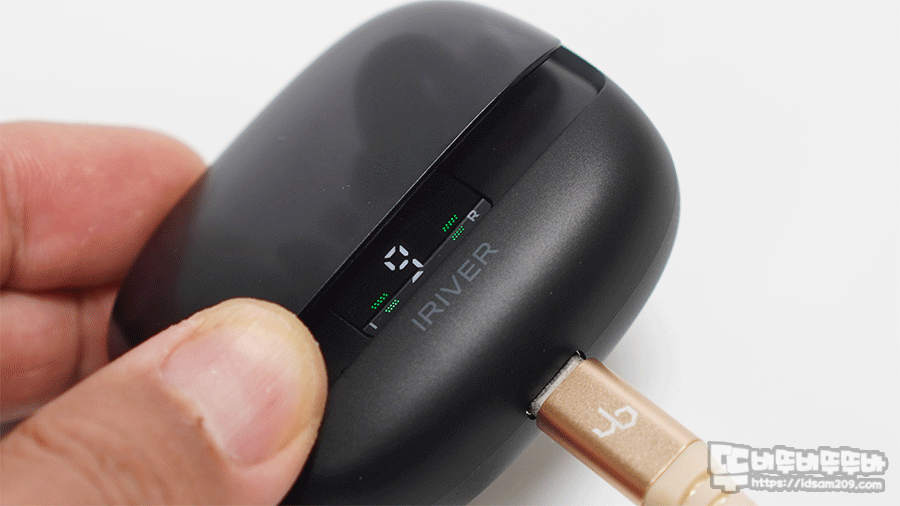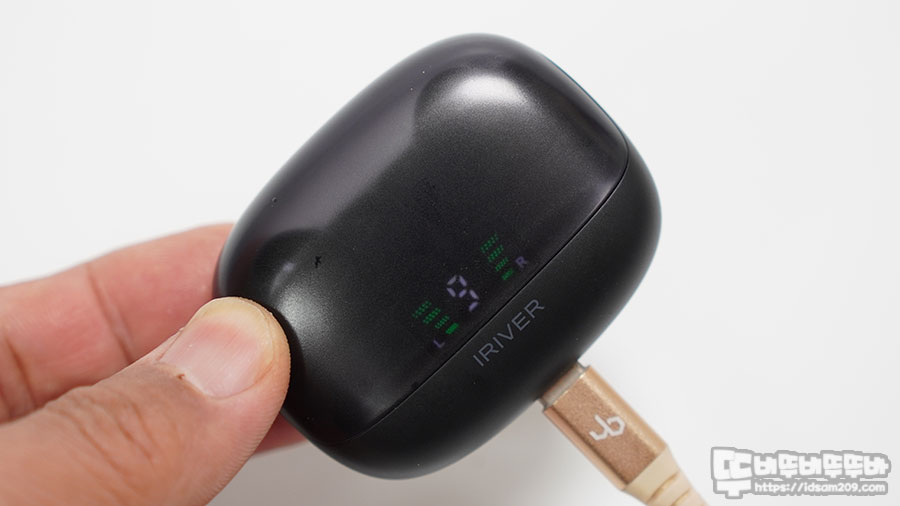 아이리버 ITW-A1 액티브노이즈캔슬링 블루투스 이어폰은 투명 커버를 닫았을 때 녹색 LED로 표현되는 충전 효과를 확인할 수 있는데요.