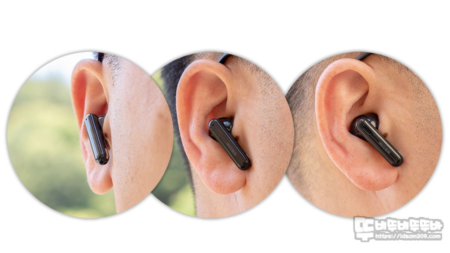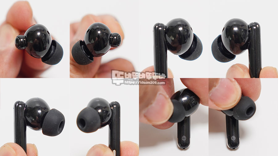 전형적인 인이어 타입의 무선 이어폰이기에 실리콘 이어팁을 잘 선택하여 귓구멍에 잘 맞추는 게 사용 포인트가 될 거 같고요.