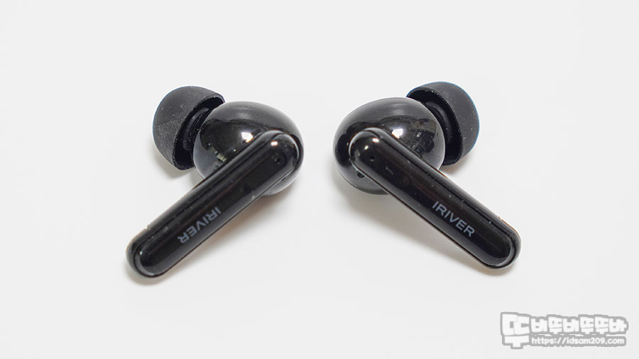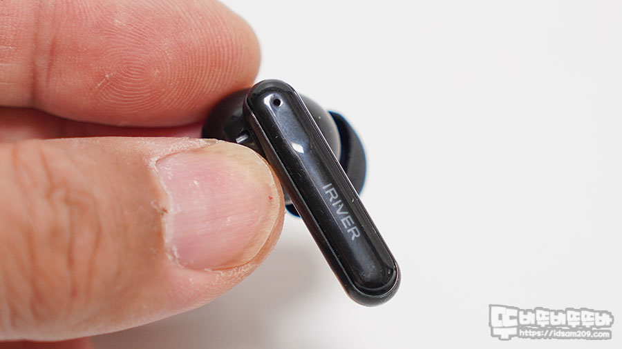 터치 컨트롤을 지원하는 아이리버 ITW-A1 액티브노이즈캔슬링 블루투스 이어폰은 스틱 상단에 살짝 깎인면으로 터치 센서 위치를 표현하고 있으며 터치 인식이 상당히 좋아 오류가 없는 편이네요.