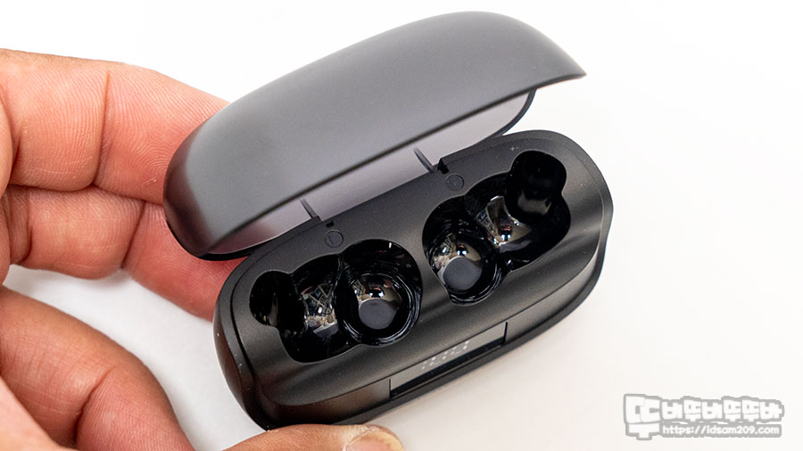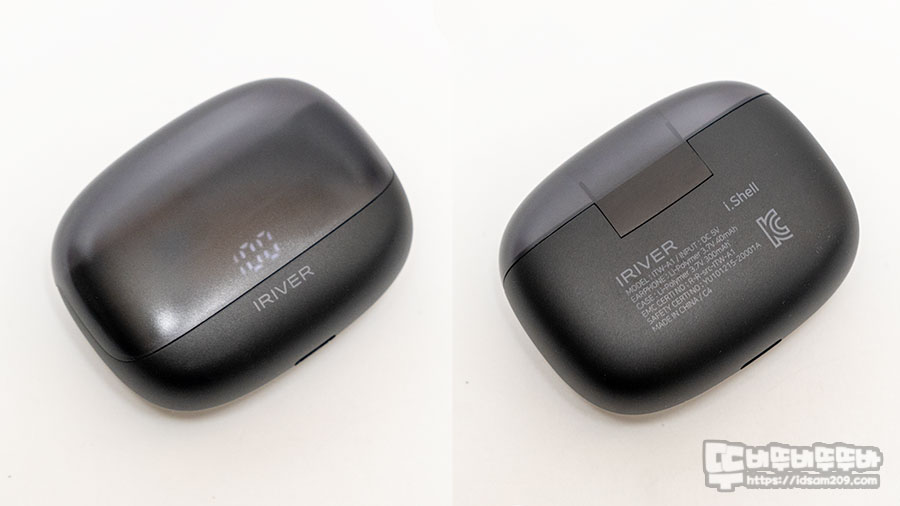 아이리버 ITW-A1 액티브노이즈캔슬링 블루투스 이어폰 충전 케이스는 뚜껑 부분이 투명 소재를 사용하여 전면을 커버하는 아이쉴드 디자인 적용되어 전면에 디지털로 표현되는 배터리 잔량 및 충전상태를 한눈에 볼 수 있다는 장점이 있고요.