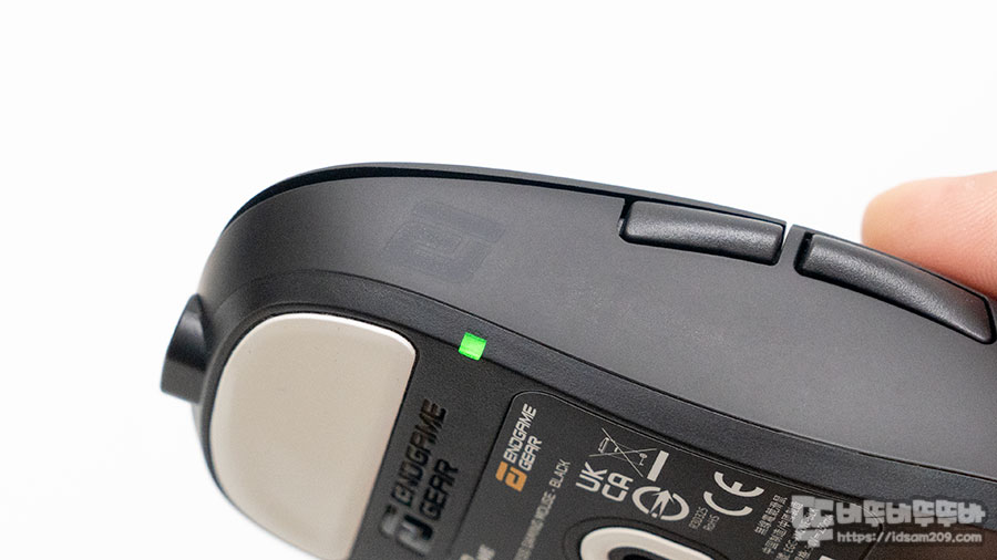 측면에 LED 인디케이터는 DPI 단계 표현 그리고 충전 시 배터리 상태를 표현해 줍니다.