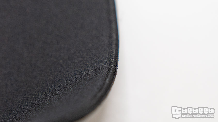 바닥면에 티끌이 잘 느껴지는 얇은 3.5mm 두께지만 2.2mm 초미세 스티치(오버로크)가 적용되어 패드 끝부분에 손 또는 손목 부분을 올려놓아도 단차가 느껴지지 않습니다.