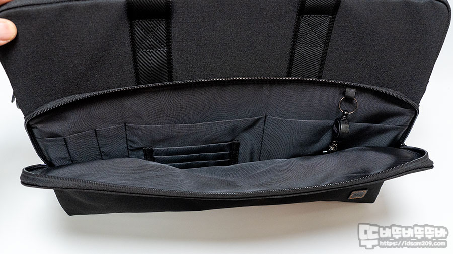 제품의 사이즈는 약 43 X 30 X 6 cm이며 가방의 전체적으론 생활방수와 스크래치에 강한 옥스포드 원단과 YKK 지퍼가 사용된 게 특징인데요.