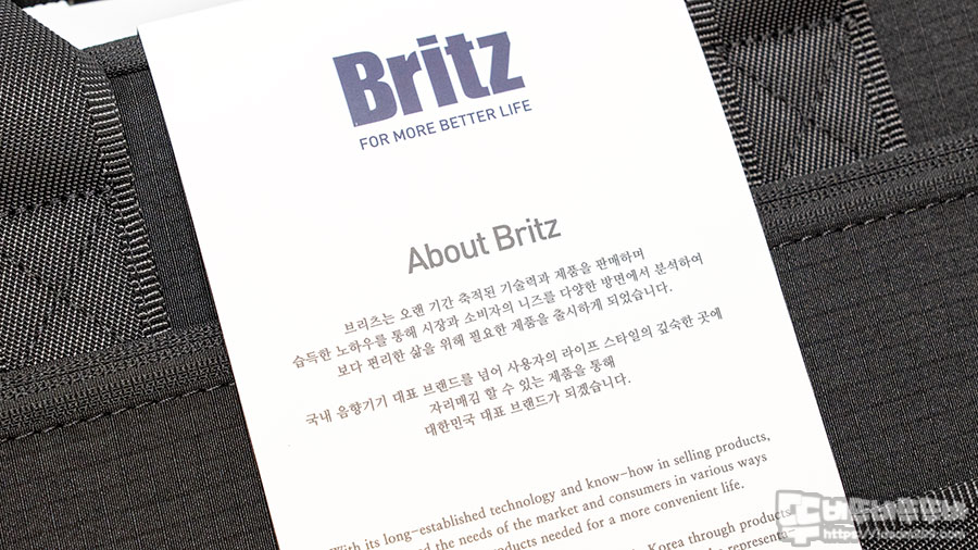 지금까지 필자가 가방류 제품을 구입하시면 대부분 비닐에 쌓인 가방을 받는 게 보통이었는데 브리츠 제품은 종이 박스에 담겨에 베송이 되어 꽤 고급스러운 느낌을 주었습니다.