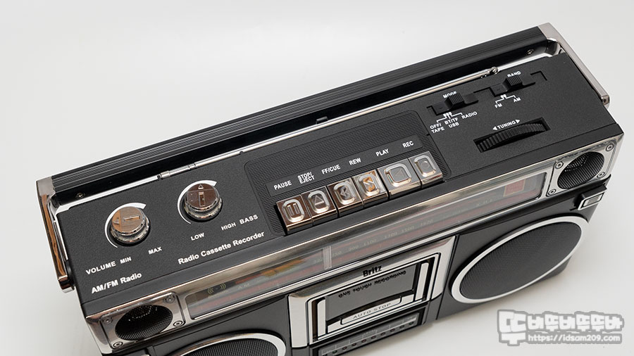 브리츠 카세트 라디오 올인원 붐박스 블루투스 스피커 BZ-BBX1은 과거에 사용해 본 카세트 플레이어와 비슷한 빈티지 느낌을 제대로 살려주고 있습니다.
