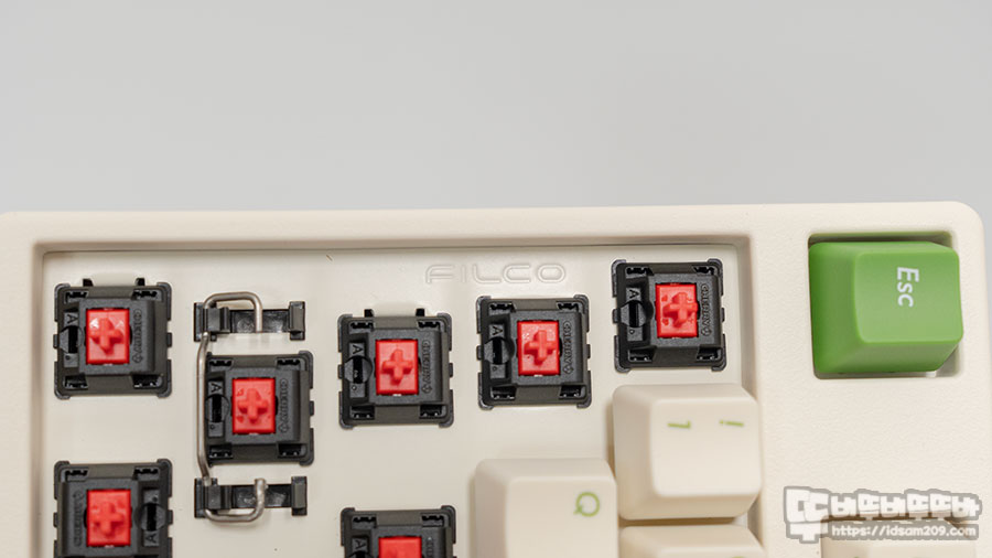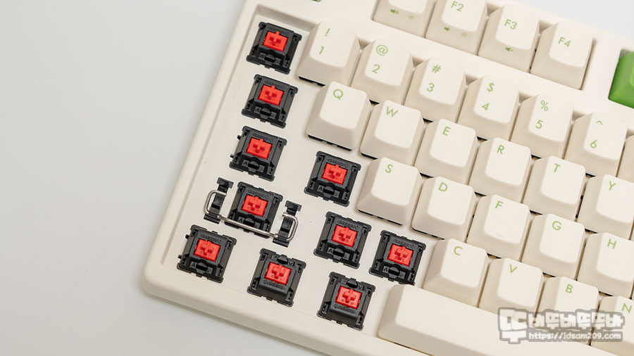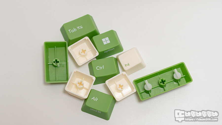 대부분 마제 스태빌라이저 방식을 싫어하는 분들이 많으시겠지만 반대로 선호하시는 분들도 계시기에 무조건 마이너스 요인이라고 보기 힘들지만 키캡 놀이가 찾은 분들에겐 스빌라이저의 구조 특성상 OEM 프로파일에 한정되는 점과 키캡 탈부착에 스킬이 필요한 불편함은 어쩔 수 없을 거 같네요.
