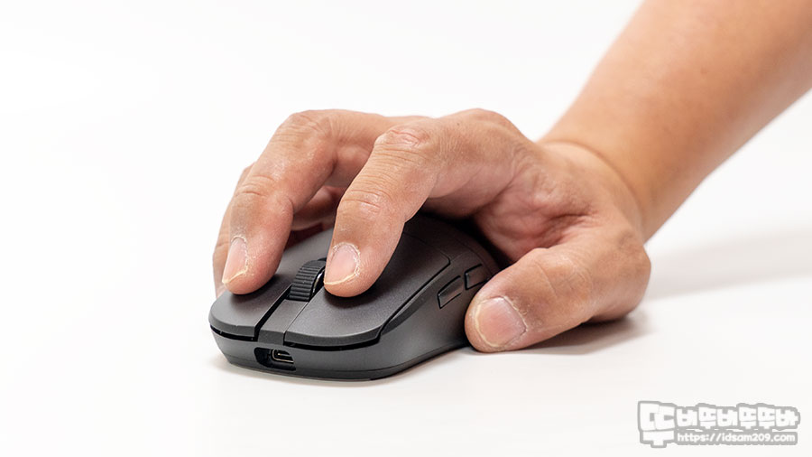 전체적인 사용에서는 대칭형 디자인이기에 적응하는데 어려움이 없는 편이며 뒤는 높고 앞쪽은 낮은 디자인이기에 클릭 버튼을 사용하는 부분에서는 디아블로 4 같은 롤플레잉 게임에서 광클릭을 할 때 손가락에 부담이 없고 약 70g대의 적절한 무게감으로 초경량형 마우스를 사용할 때보다는 힘들이지 않고 컨트롤이 가능하며 좋았습니다.