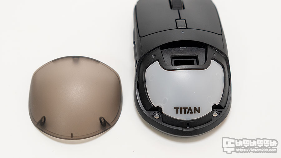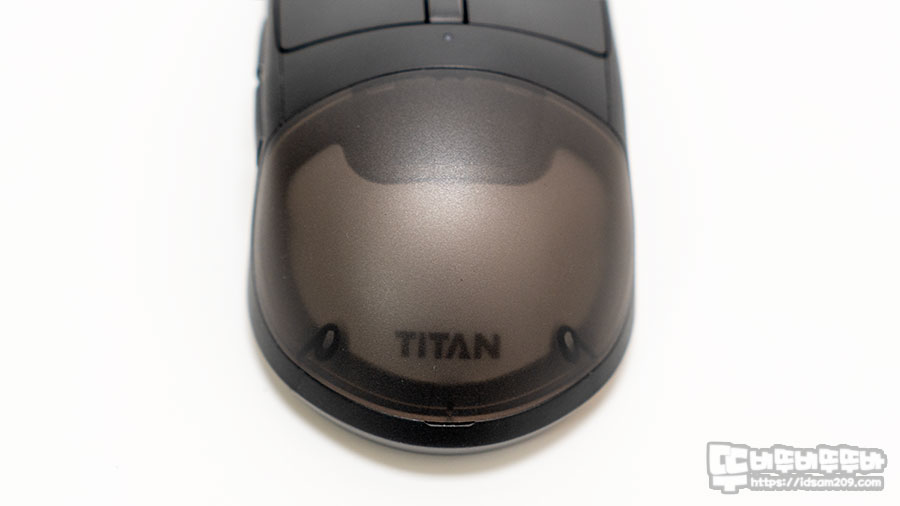 제품에는 기본으로 스모크 컬러가 가미된 투명 팜 커버가 적용되어 있으며 TITAN 로고 아랫부분의 경계면을 들어 올려 손쉽게 교체가 가능한데요.