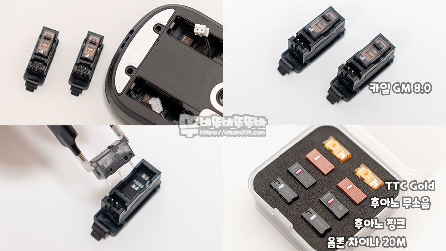여기서 의외의 스위치가 TTC 골드 스위치인데 옴론 차이나와 비슷하지만 클릭감이 부드러운 느낌이라 오히려 옴론보다 좋게 느껴져 리뷰하는 내내 TTC 골드 스위치를 사용했네요.
