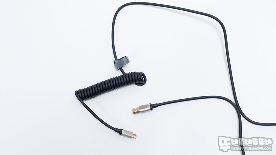 케이블은 코일형과 일자형이 결합된 디자인으로 상당히 긴 편이라 책상 아래 본체를 두고 책상 위에 키보드를 올려놓고 사용하더라도 넉넉하게 사용할 수 있더라고요.