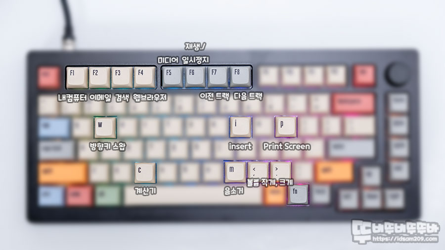 볼륨 노브가 있는 75% 배열로 VIA 프로그램을 통한 커스터마이징이 가능하며 모든 키 N-Key 롤오버 지원하는데 특징입니다.