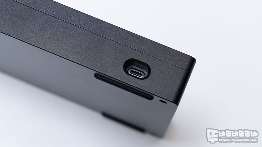 키보드의 기본단자는 USB-C 타입으로 다양한 케이블 사용이 가능하게 여유 있는 홈을 확인할 수 있네요.