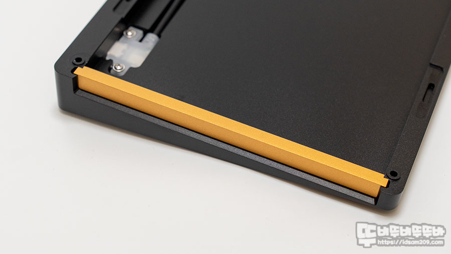 황동 느낌의 측면 가이드 안쪽에 기판 부분과 접촉되어 쇼트가 되는 것을 방지하기 위한 패드가 부착되어 있는 것을 확인할 수 있습니다.